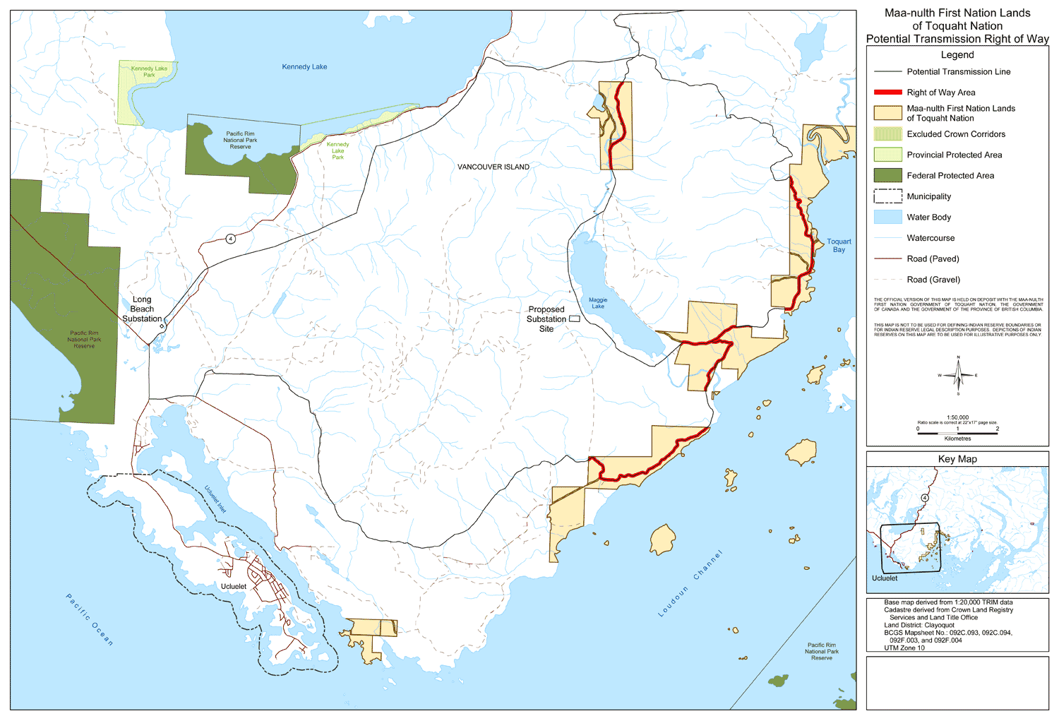 | Appendix B-5, Part 2(a), Plan 3 | Toquaht Nation | Point of commencement is within Block 2, Plan 2014, District Lot 797 at Crown Corridor labelled FSR 9614 and R12886. Point of termination is northern boundary of Block 2, Plan 2971, District Lot 795 | Grant of Private Road Easement |