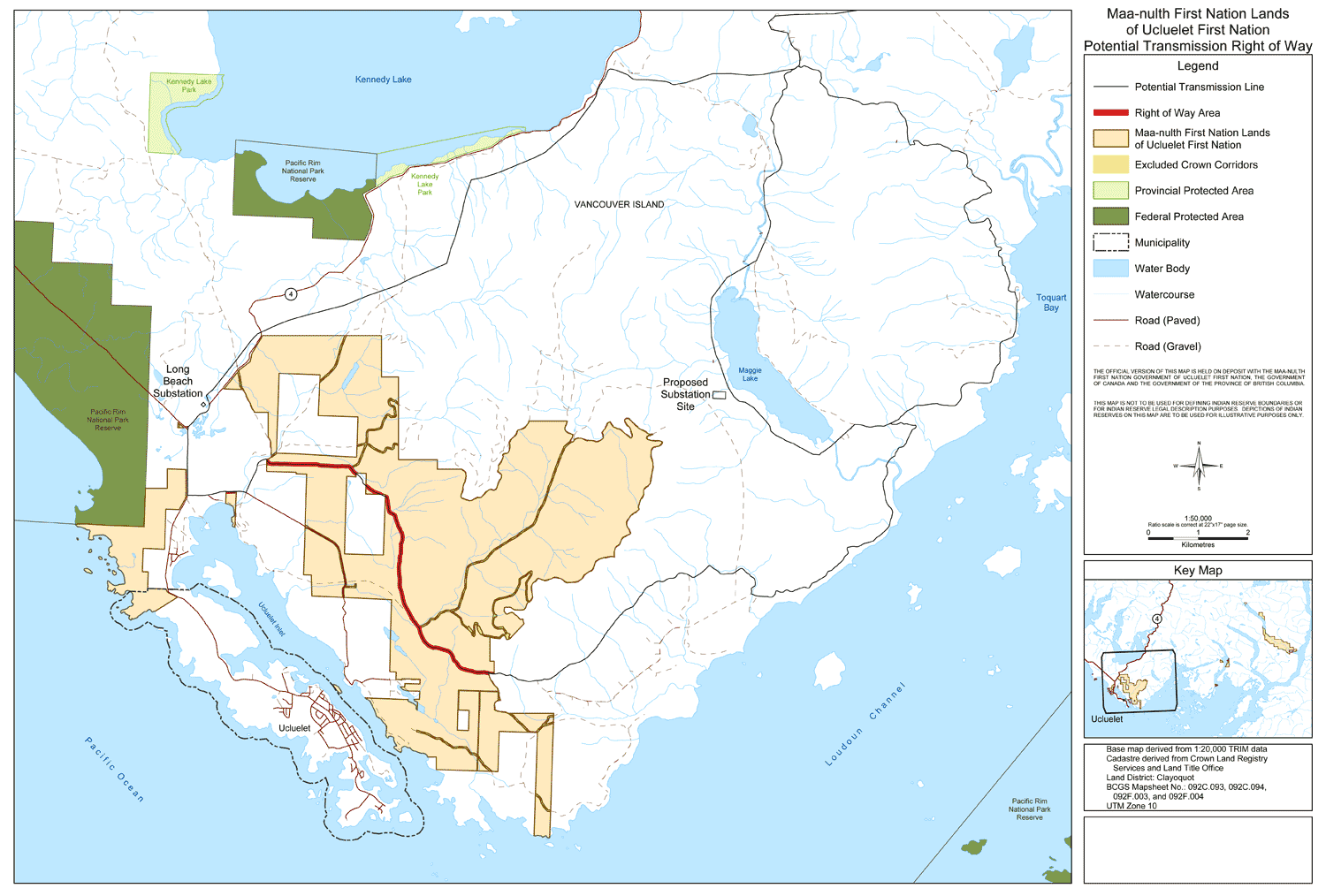 | Appendix B-5, Part 2(a), Plan 1 | Her Majesty the Queen in Right of Canada, as Represented by the Minister of the Environment | Access trail into Pacific Rim National Park | Provincial Reserve No. 001013 | Right of Way for Willowbrae Trail |