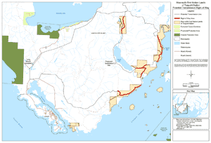 | Appendix B-5, Part 2(a), Plan 7 | Her Majesty the Queen in Right of British Columbia, as Represented by the Minister of Environment | Commercial trapline cabin | Provincial Reserve No. 001001 | Licence of Occupation for Trapline Cabin |