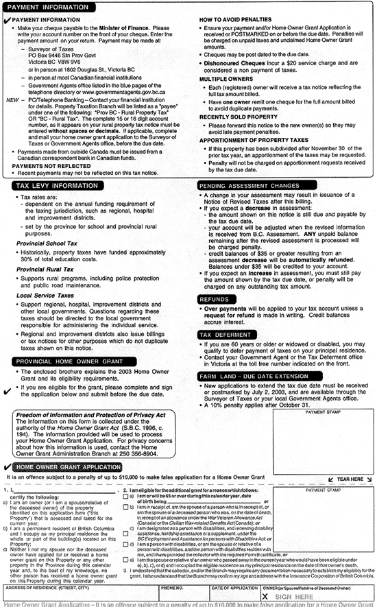 Property Tax Notice 2003 Regulation