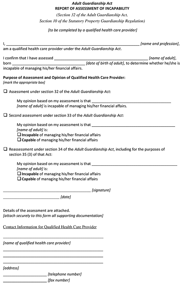 (2) For the purposes of section 34 of the Act, a qualified health care provider must consider the changes, if any, in the adult's incapability since the previous assessment and the adult's understanding of those changes.