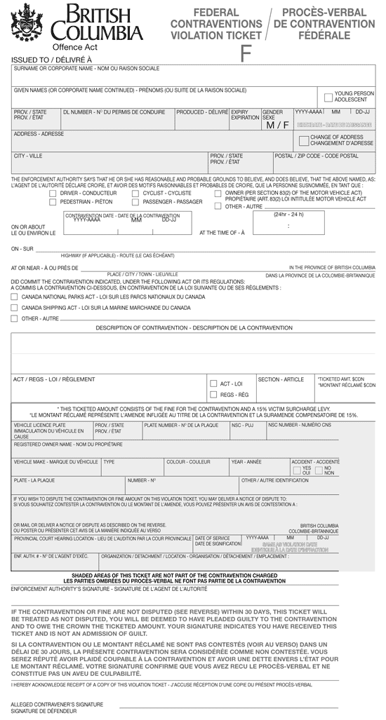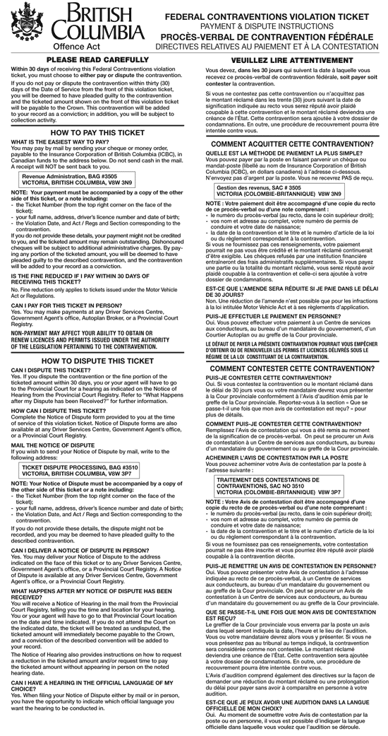 (2) The instructions to be printed beside or on the reverse side of the copy of the violation ticket given to the person alleged to have committed a contravention must be in Form A.1.