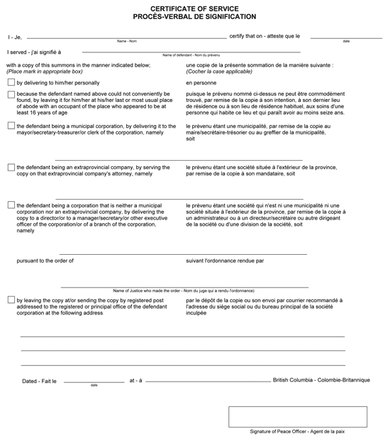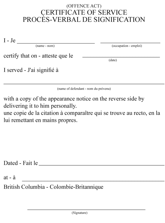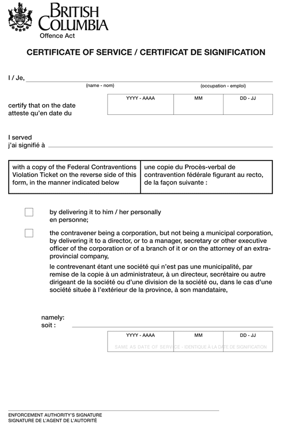 (3) The certificate of service to be printed beside or on the reverse side of the violation ticket sent to the Insurance Corporation of British Columbia must be in Form A.2.