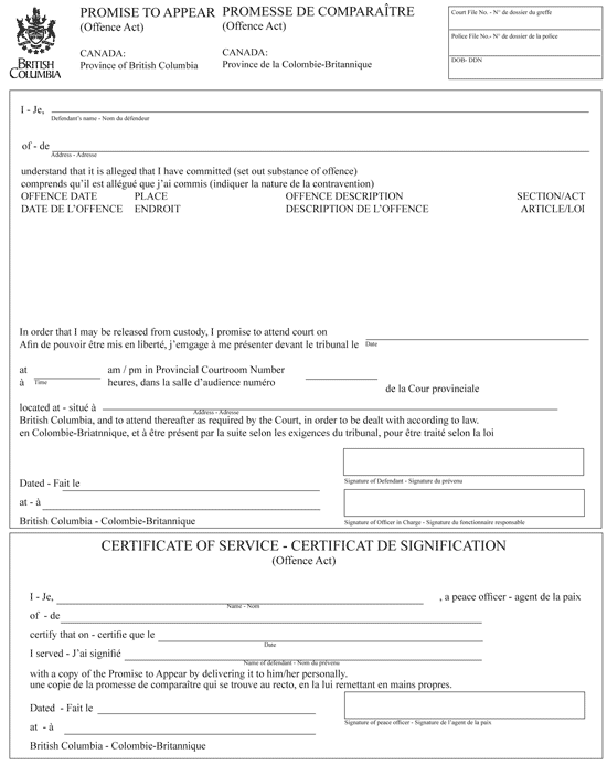 4 A promise to appear and the certificate of service of a person serving a promise to appear must be in Form C.