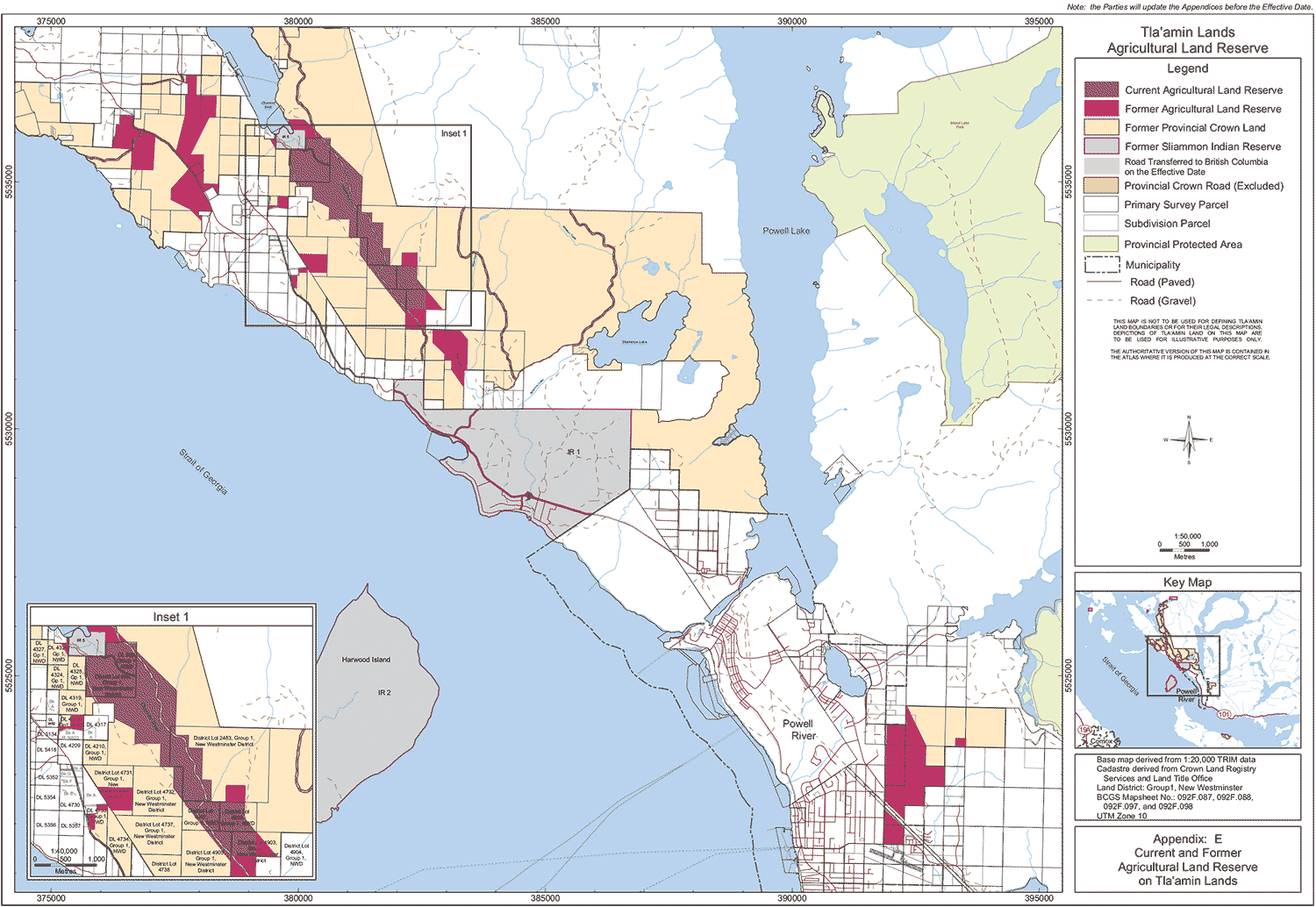 Current and Former Agricultural Land Reserve on Tla'amin Lands