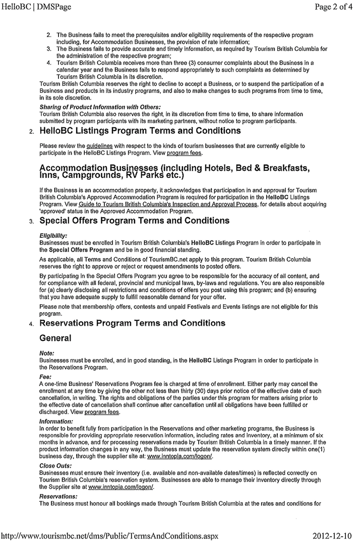 3. All licences, leases or permits related to the delivery of the Tourism Programs that currently reside with the Province, including those stored in consumer, contact information, tourism product management and digital asset management databases.