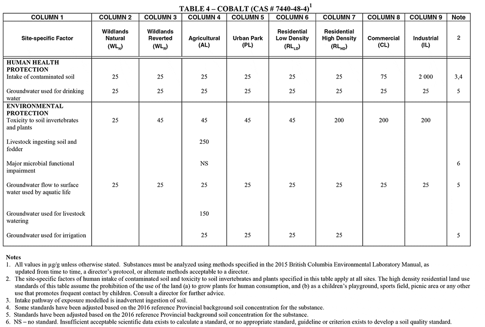 (a) substance concentrations, listed in Schedule 4, Column 2;