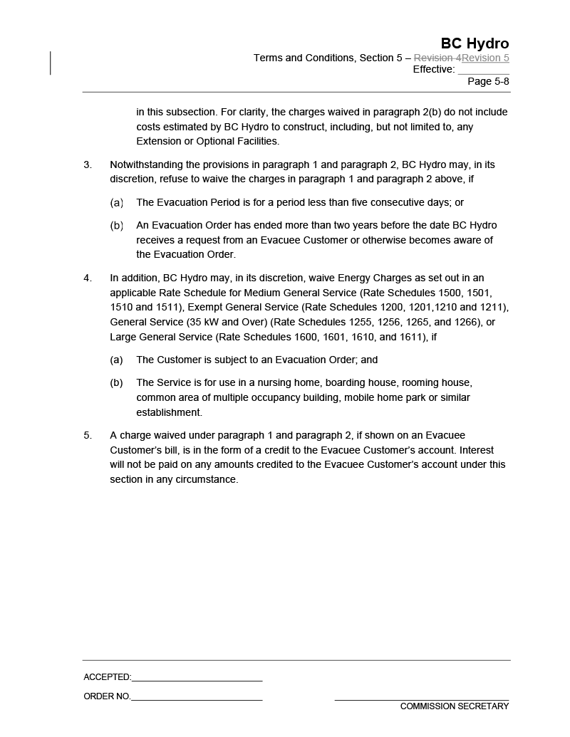 4 (1) Within 10 days of receiving an application from the authority, the commission must issue final orders so that the authority's Electric Tariff is amended as set out in the Appendix to this direction.