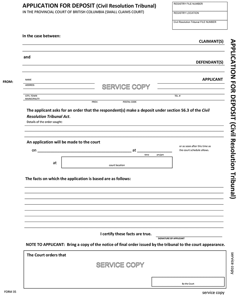 (e) the first 10 replies are filed in the North Vancouver Small Claims Registry.