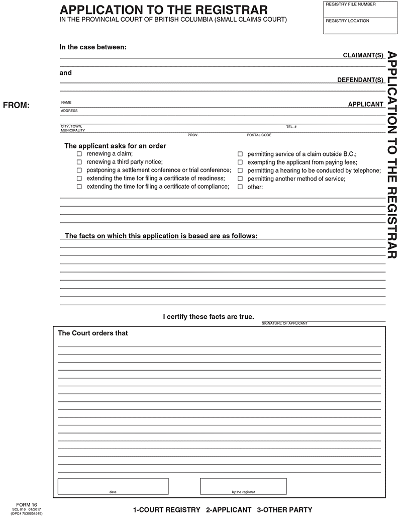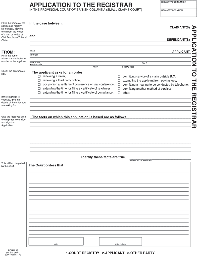(a) the first 16 replies are filed in the Nanaimo Small Claims Registry,