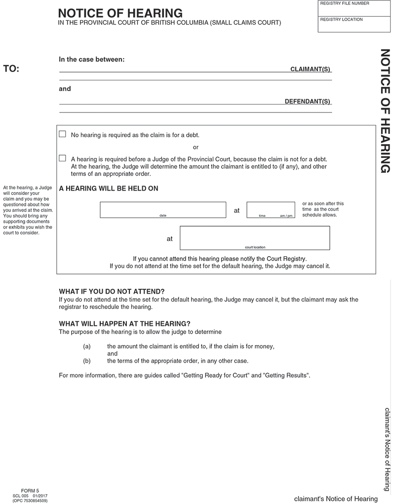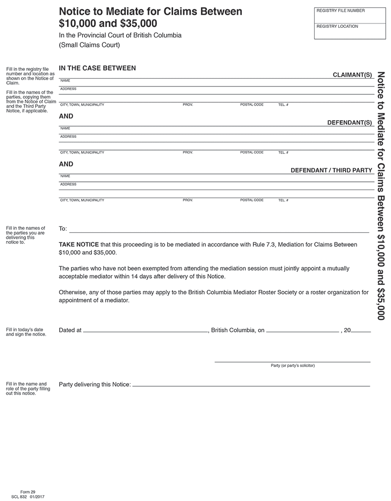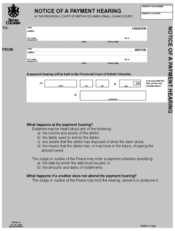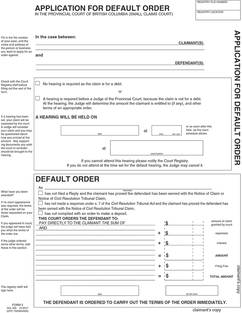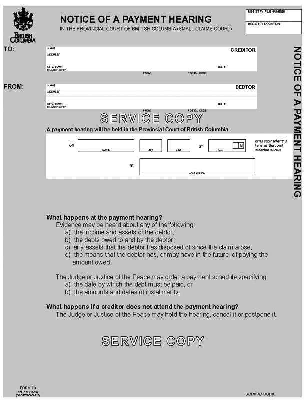 You may need to contact a court registry in British Columbia to obtain Small Claims forms to fill out. This website lists court locations: http://www.ag.gov.bc.ca/courts/overview/locations.htm