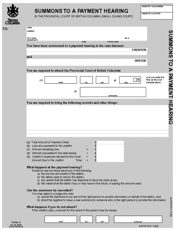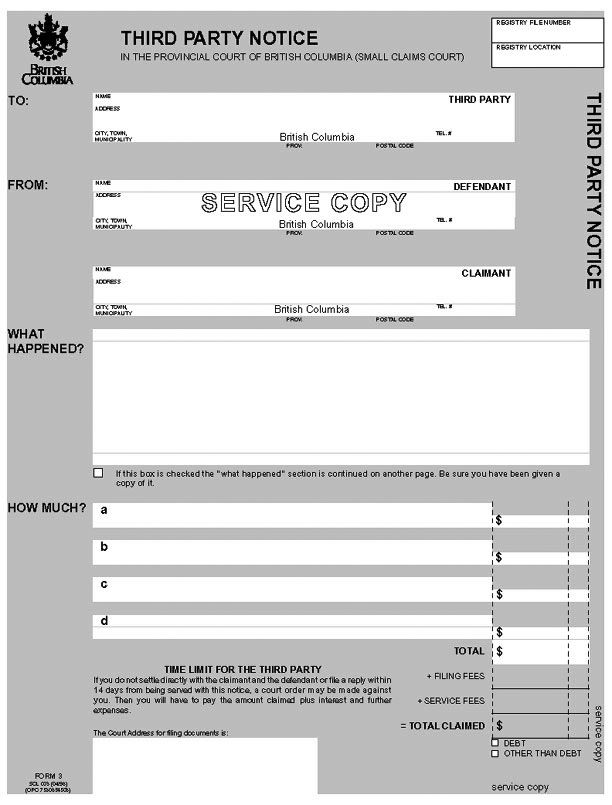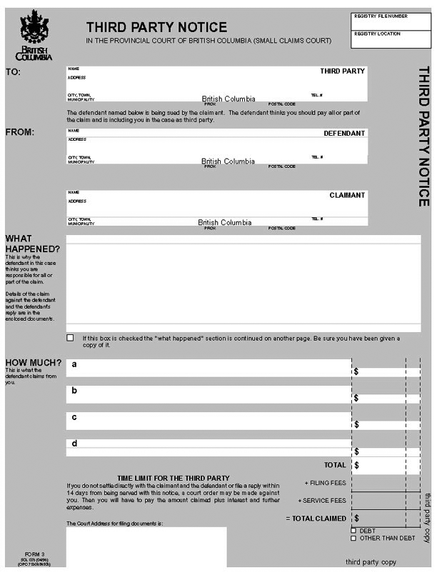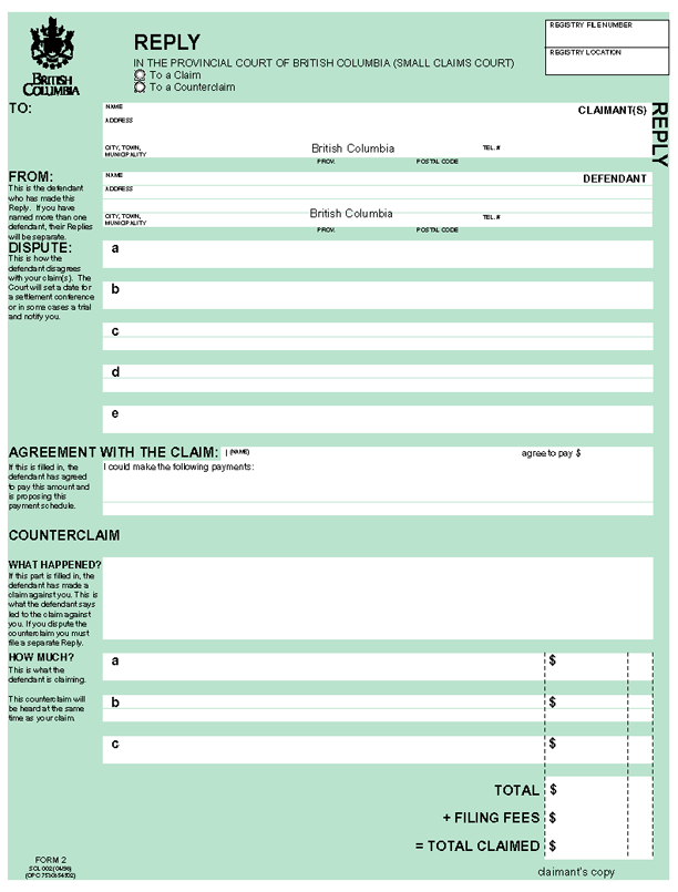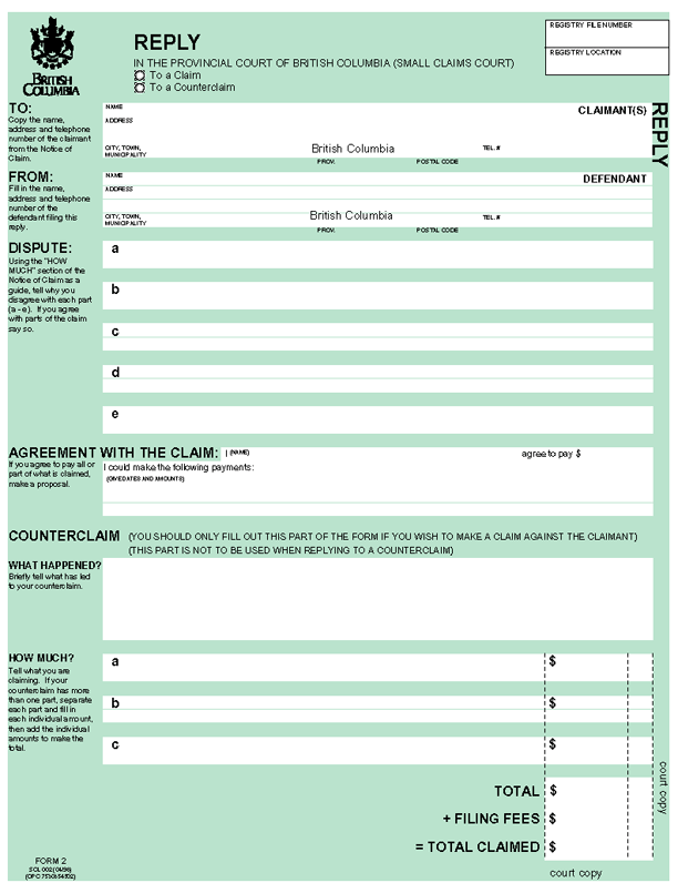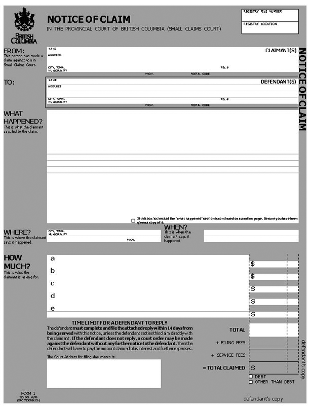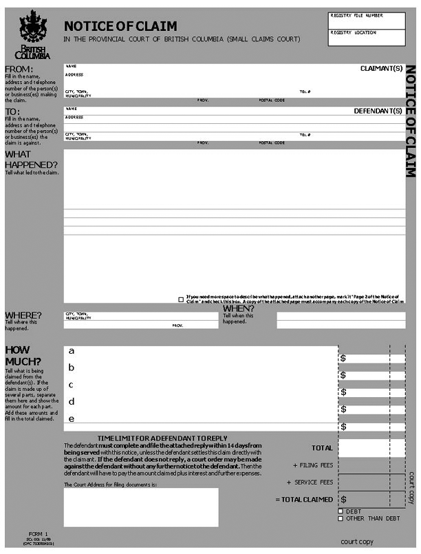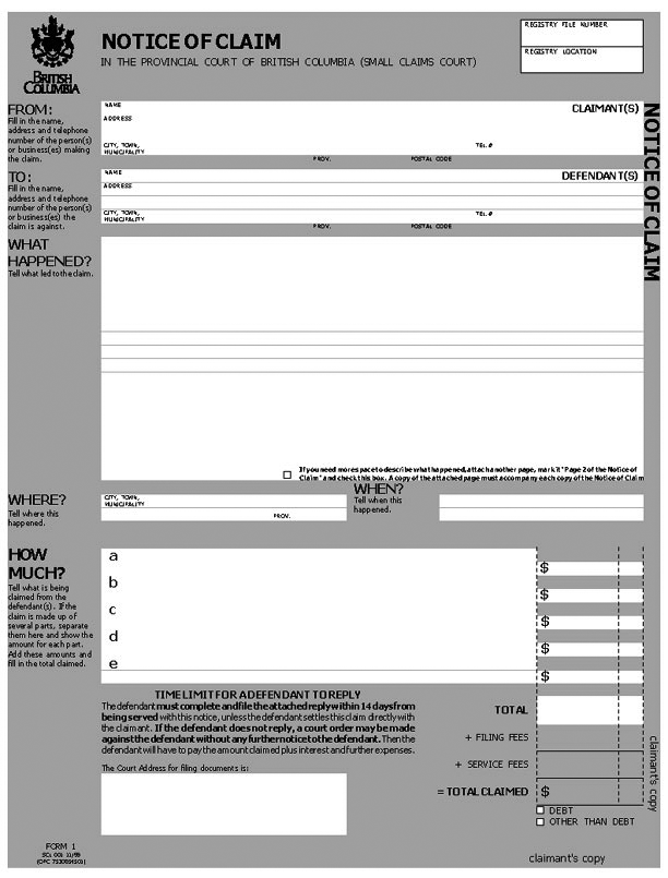 Fillable PDF forms can be found at this website: http://www.ag.gov.bc.ca/courts/small_claims/info/forms.htm