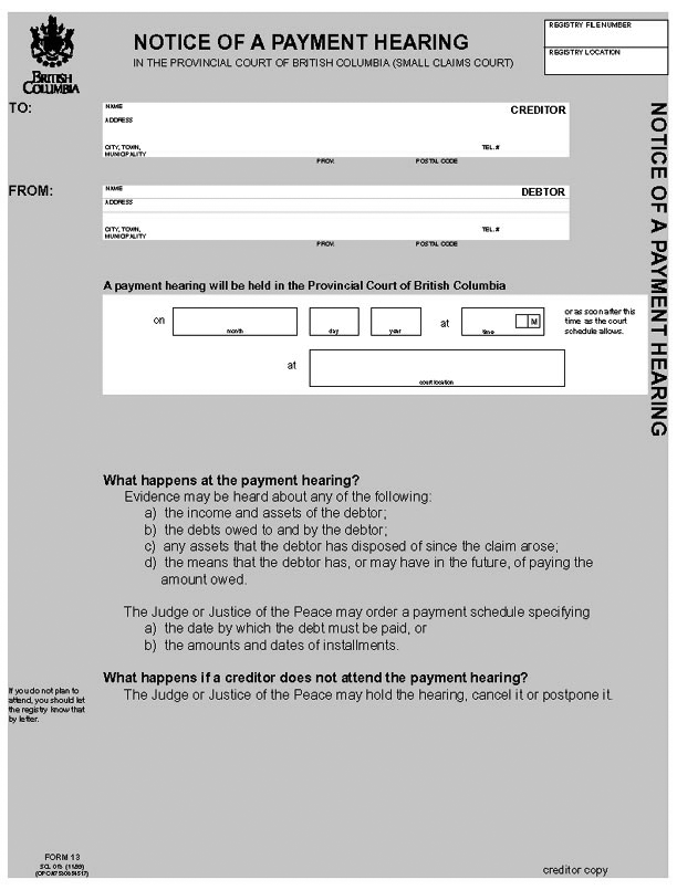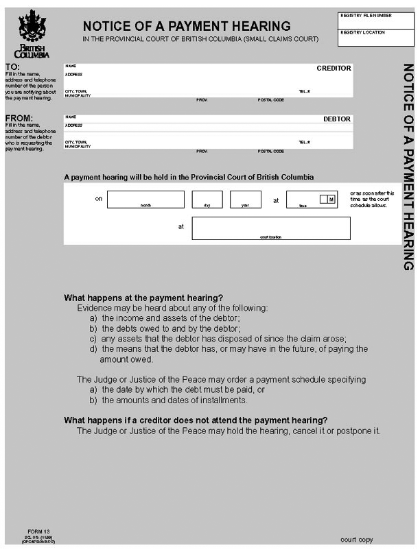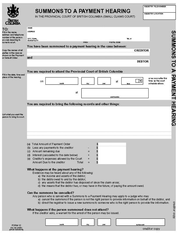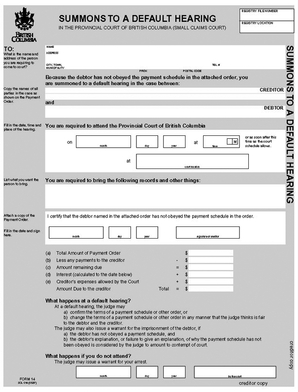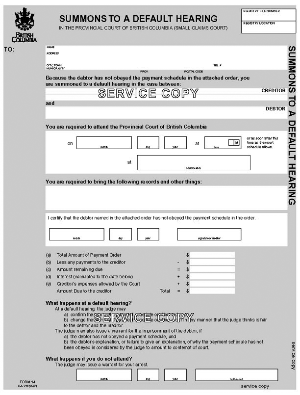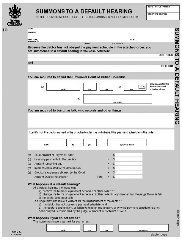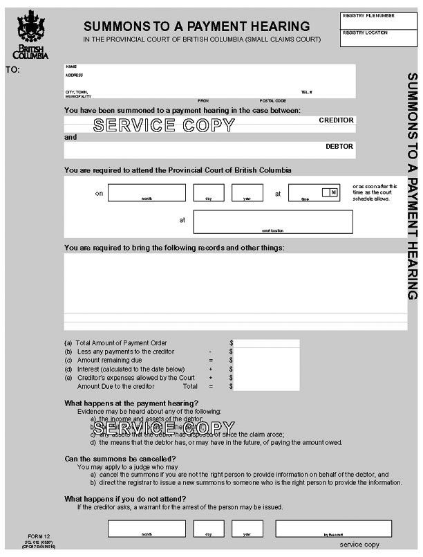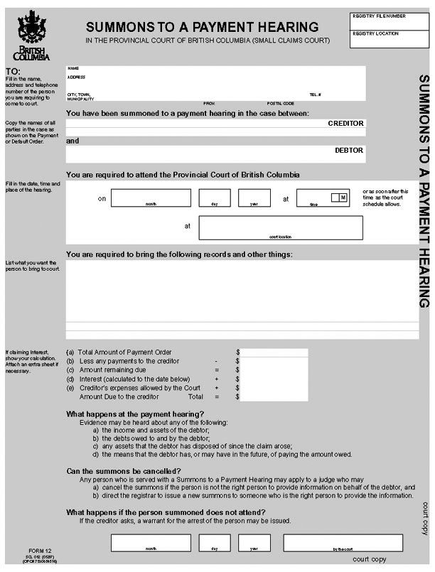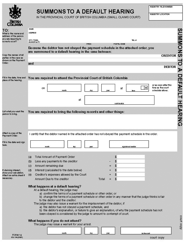 Fillable PDF forms can be found at this website: http://www.ag.gov.bc.ca/courts/small_claims/info/forms.htm