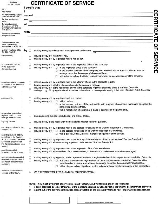 (2.2) If the defendant is a society incorporated under the Society Act, the claimant must file with the notice of claim a printout of a search showing the most recent address of the society on file with the Registrar of Companies.