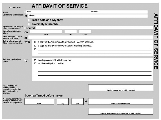 (e) for personal service of a summons to a payment hearing, an affidavit of service.