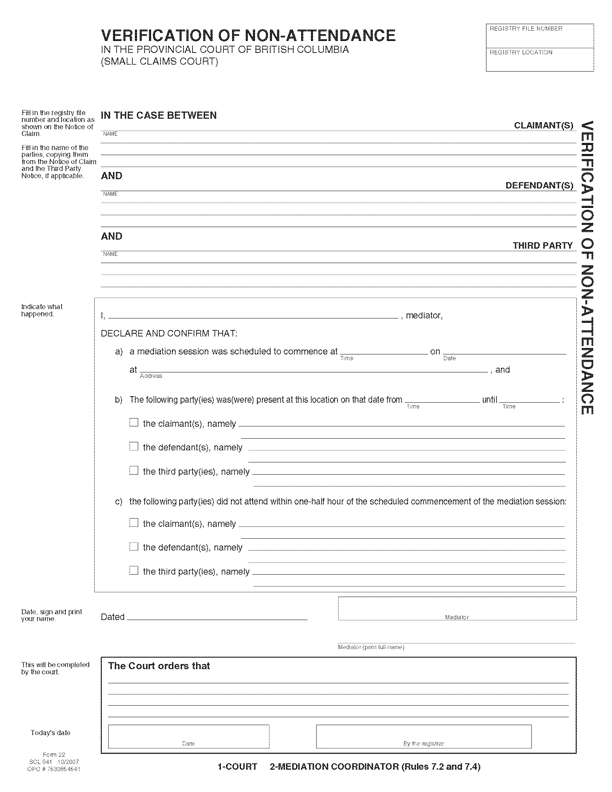 Rule 22 (1) and (2) BEFORE amended by BC Reg 146/2010, effective July 1, 2010.