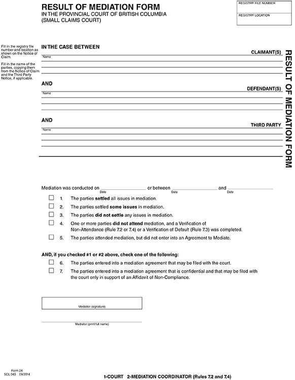 Schedule B, Forms 24 and 25 BEFORE amended by BC Reg 183/2014, effective October 6, 2014.