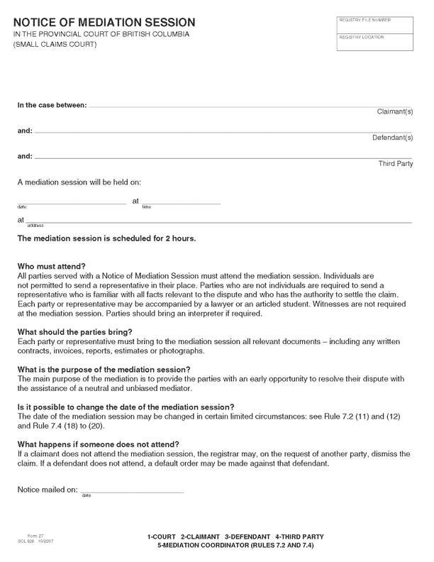 (ii) the court file relating to the claim was transferred to the Robson Square Small Claims Registry (Vancouver);