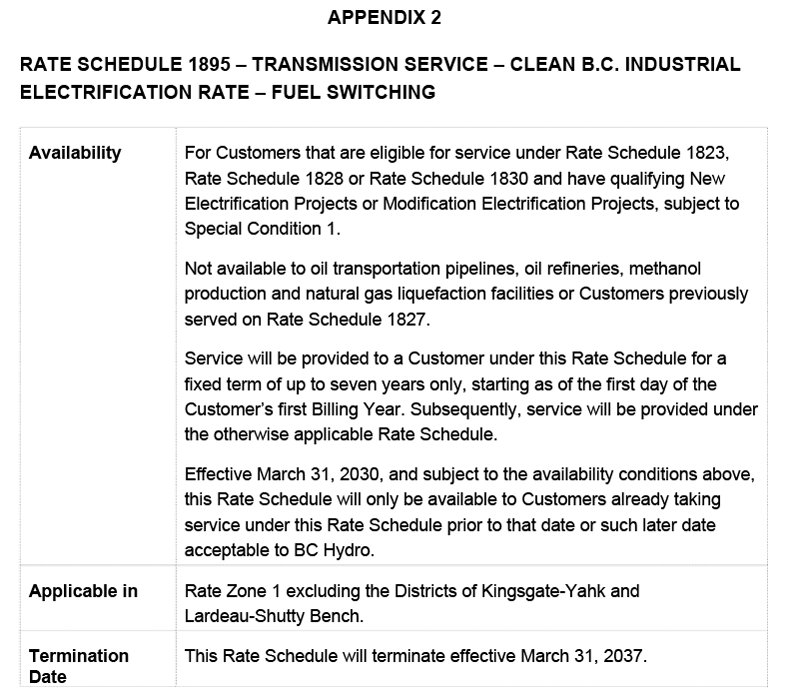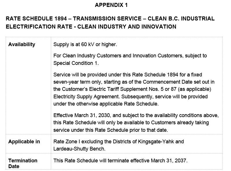 (1.1) Within 10 days after the date this subsection comes into force, the commission must issue an order, effective on the date the order is issued, setting as rates the rate schedules that are attached to this direction as Appendix 1 and Appendix 2.