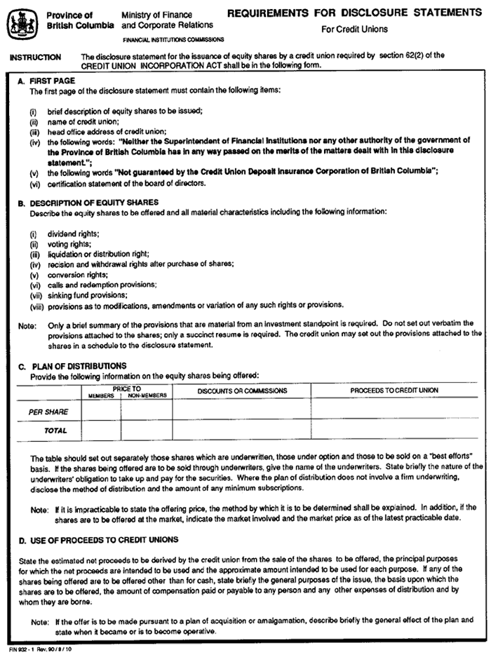 4 In addition to the requirements for a disclosure statement in section 62 of the Act, the form of disclosure statement referred to in that section shall be in a form that conforms to the requirements set out in the attached form entitled "Requirements for Disclosure Statements".