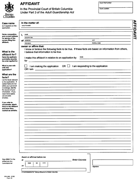 "assessment report" means an incapability assessment report in the form required under section 6 of the Adult Guardianship (Abuse and Neglect) Regulation, B.C. Reg. 13/2000;