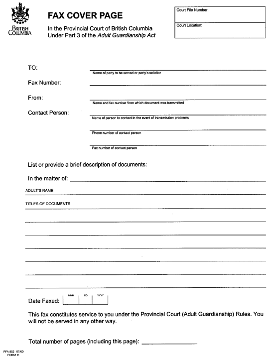 (iii) by faxing it, together with a fax cover page in Form 11, to the fax number provided by the person.
