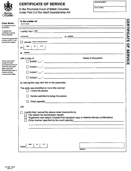 (d) for service by fax, a certificate of service (Form 12) with a transmission report generated by the sending machine.