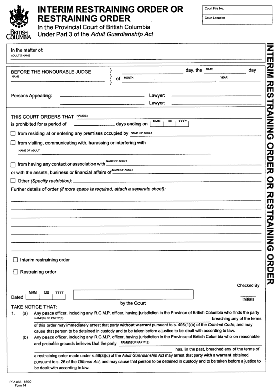 (b) in Form 14 in the case of an interim restraining order or a restraining order,