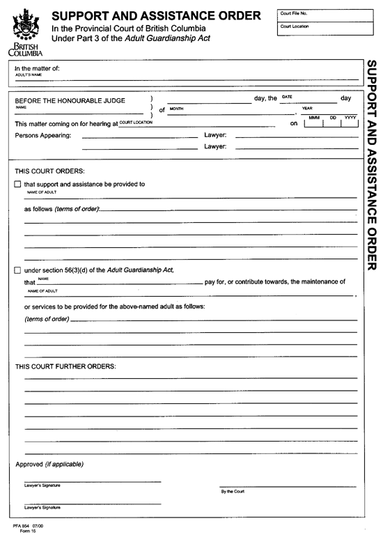 "support and assistance order" means an order made under section 56 (3) (a), (d) or (e) of the Act.