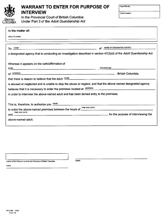 "assessment particulars" means the written details and results of an assessment provided under section 6 of the Adult Guardianship (Abuse and Neglect) Regulation, B.C. Reg. 13/2000;
