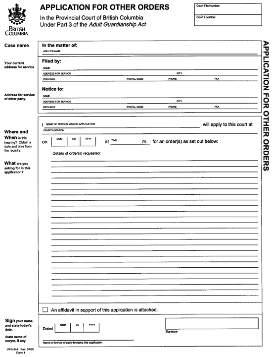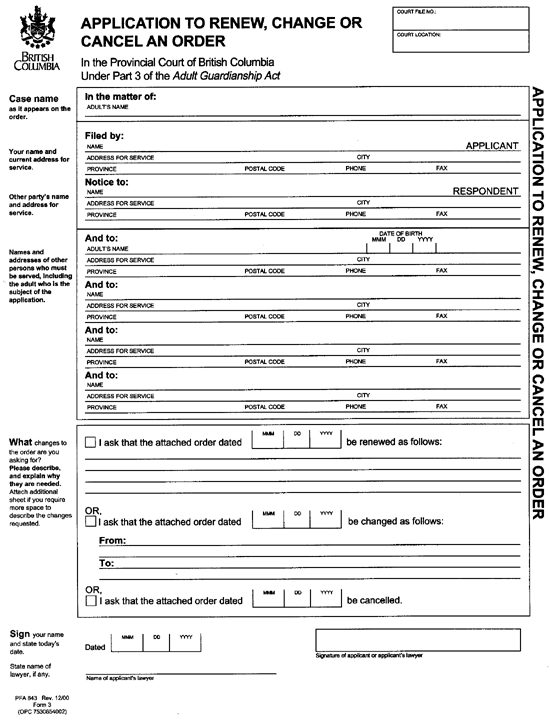 (5) To apply for an order renewing, changing or cancelling a support and assistance order, a designated agency must complete an application in Form 3 and file with the court
