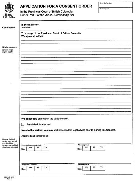 (11) To apply for a consent order, a person must complete an application in Form 5 and file with the court under subrule (7)
