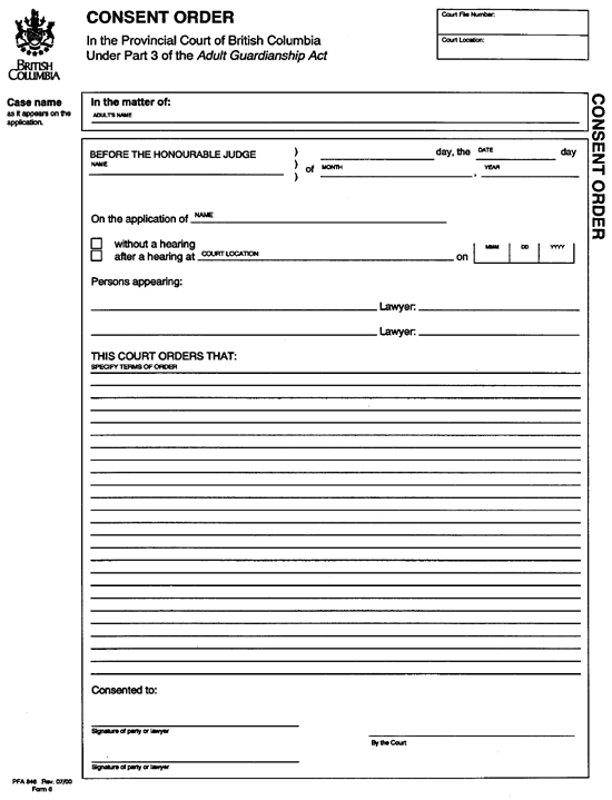 [Rule 2 (11) requires a consent order to be in Form 6.]