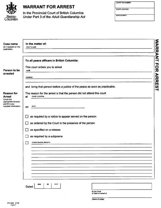 (a) issue a warrant in Form 7 for the arrest of the respondent and order that the respondent be brought to a judge promptly on that arrest, or