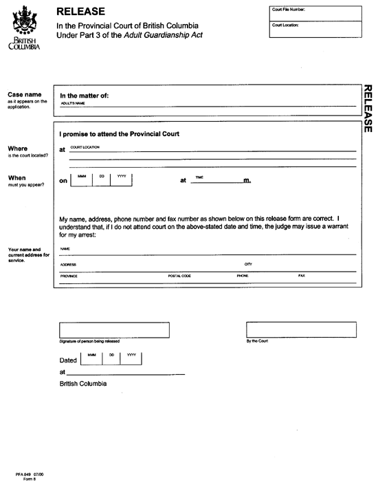 (8) The justice must release the respondent on giving the respondent a release in Form 8 requiring the respondent to appear in court on the date and at the time and place stated in the release.