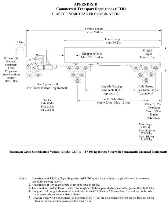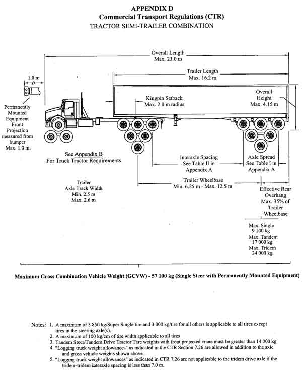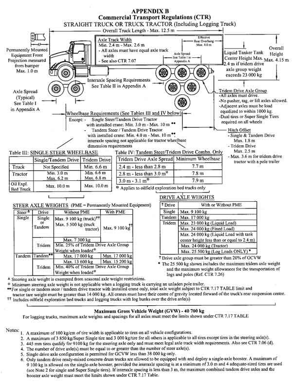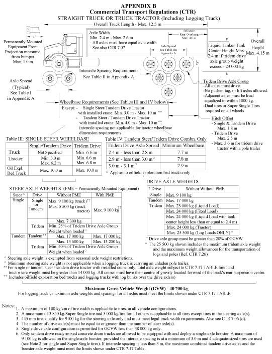 (b) unless the combination consists, in part, of a truck or truck tractor that is equipped with a log self-loader, in which case the maximum steering axle load is 9 100 kg,