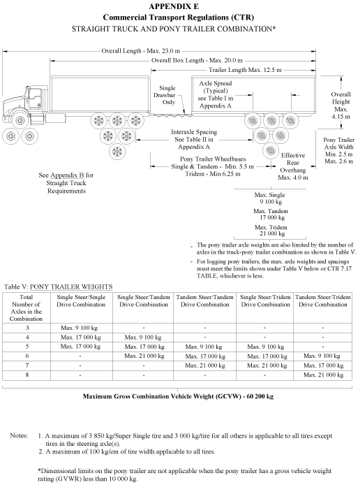 (e) except in the case of a tridem pole trailer, the gross weight on any two adjacent axles in a tridem axle group exceeds 17 000 kg,