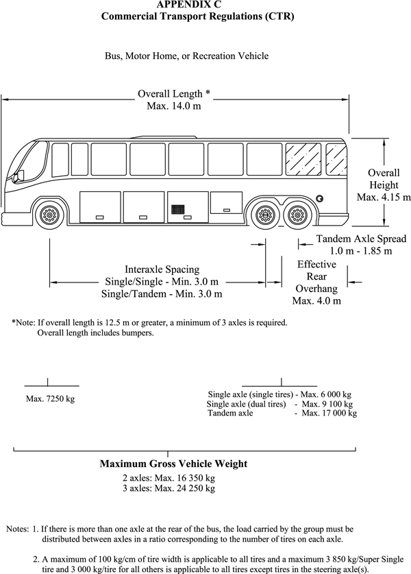 (c) if the semi-trailer, pony trailer or full trailer was manufactured before January 1, 2010 and is equipped with super single tires, the distance across the outside of the tires on each single axle, each tandem axle and each tridem axle is not less than 2.3 m and not more than 2.6 m, and