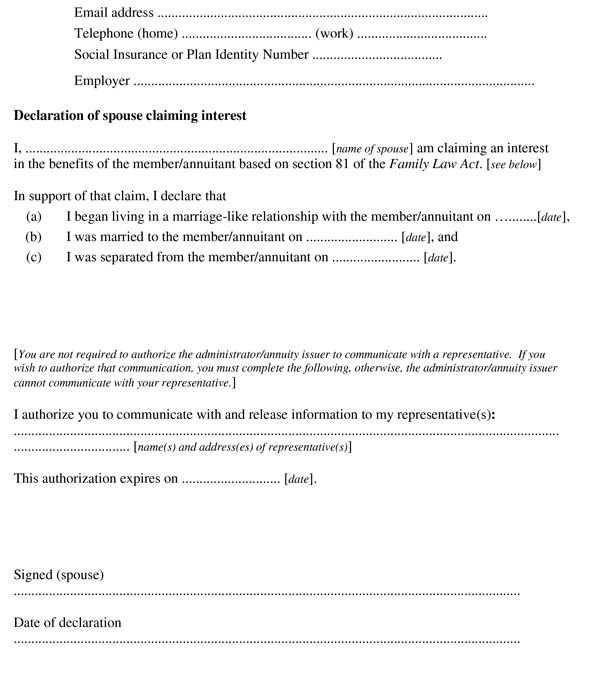 (b) the identity of any beneficiary nominated by the member other than the spouse.