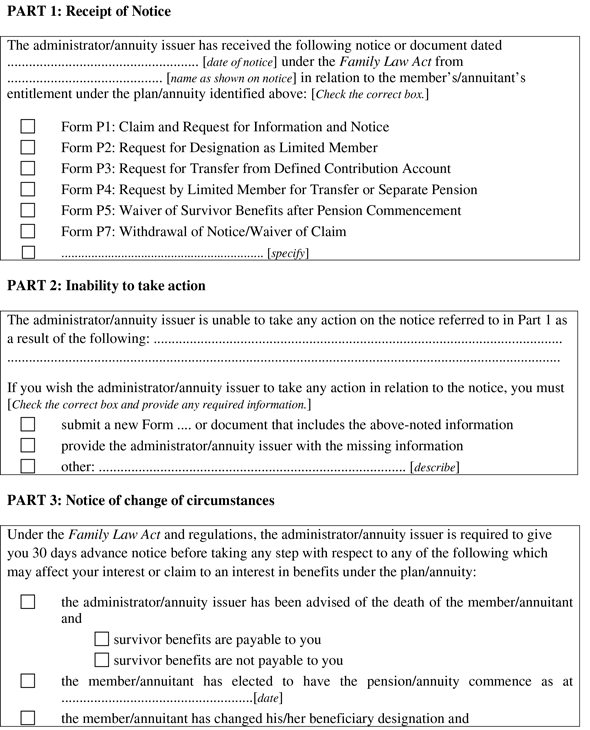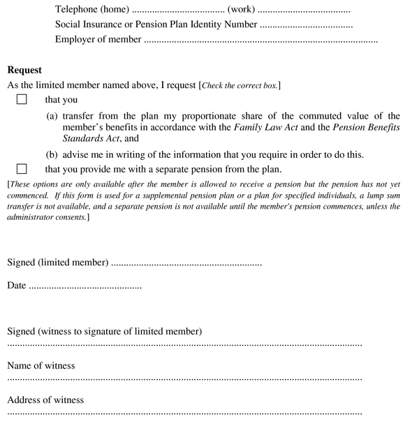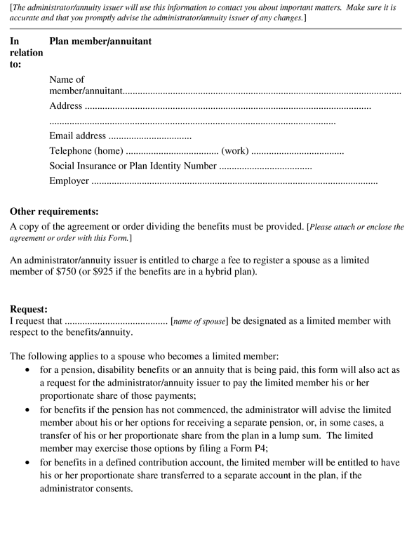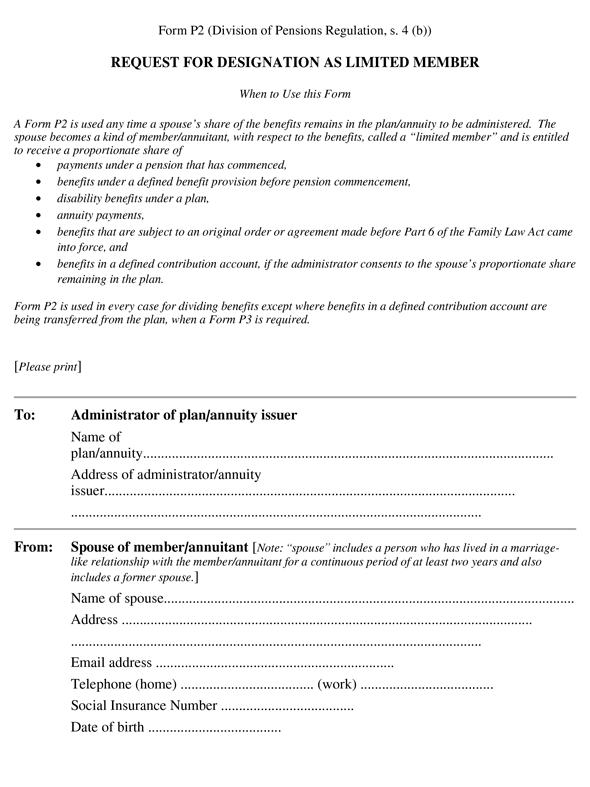 (b) notice referred to in section 112 (5), 113 (2), 114 (2) (b), 116 (2) as that section relates to a defined benefit provision, 117 (2), 119 (2), 121 (2) or 122 (2) of the Act must be given in Form P2 (Request for Designation as Limited Member),