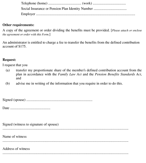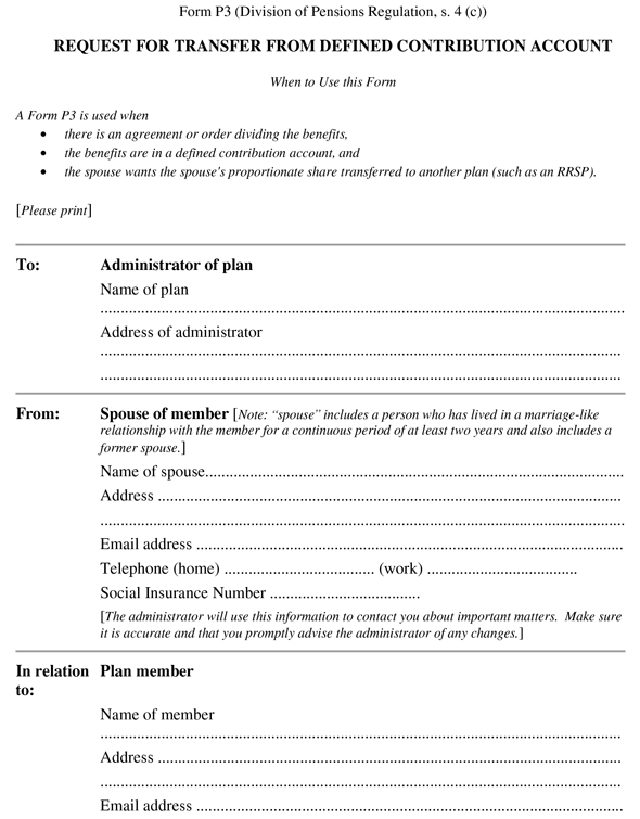 (b) if the spouse has filed a Form P3 in which the spouse requested to have his or her proportionate share of the member's defined contribution account transferred from the plan to the credit of the spouse, the administrator must effect that transfer,
