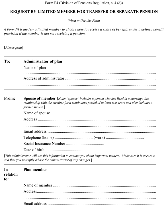 (d) if the limited member has filed a Form P4 in which he or she elected to have the limited member's proportionate share of the commuted value of the benefits transferred from the plan to the credit of the limited member, the administrator must effect that transfer.