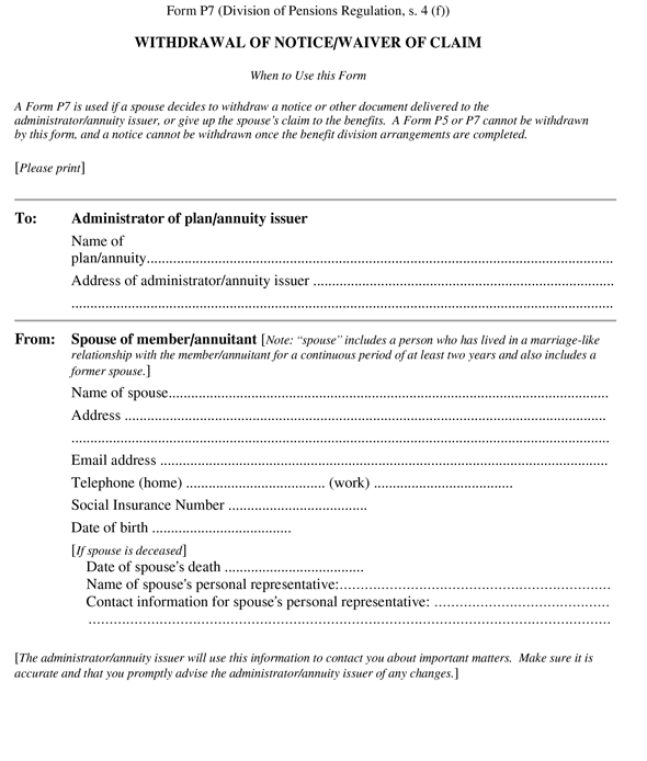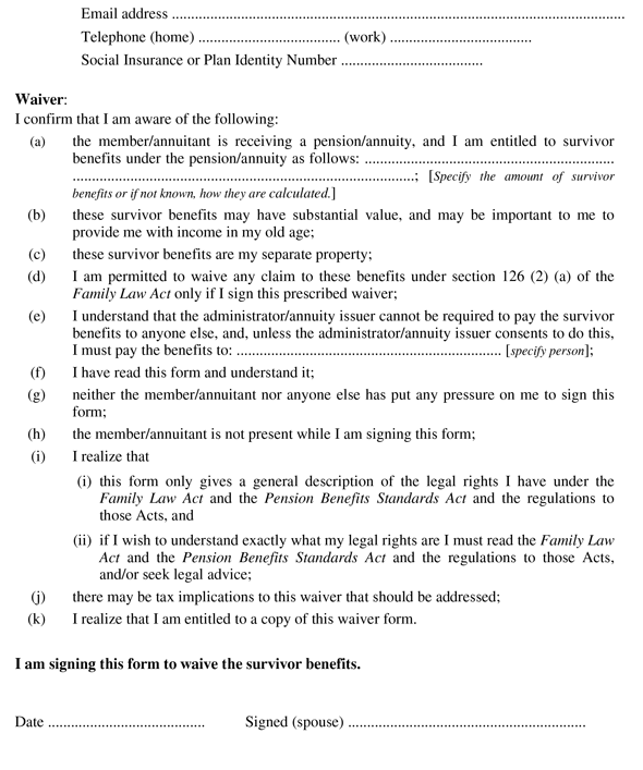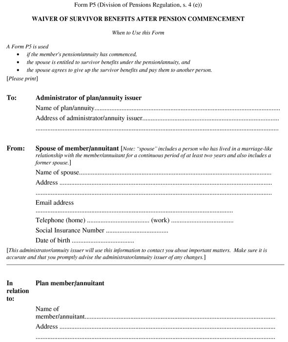 (e) the waiver referred to in section 126 (2) (a) of the Act must be given in Form P5 (Waiver of Survivor Benefits after Pension Commencement), and