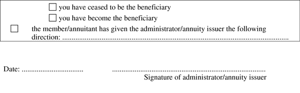 (b) any direction given to the administrator by the member with respect to the benefits, including an election by the member to have his or her pension commence and a change in a beneficiary designation.