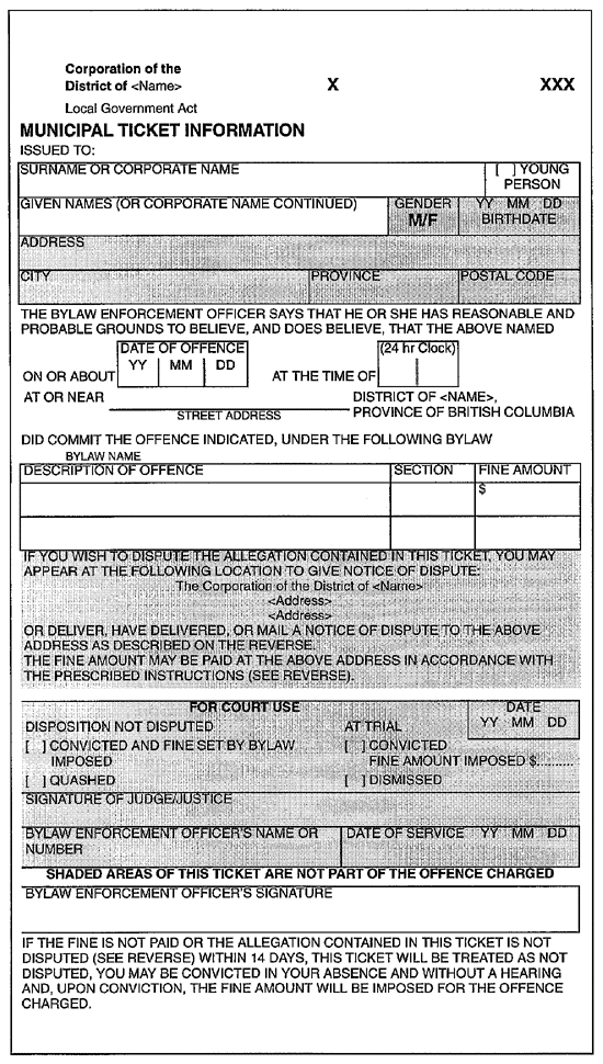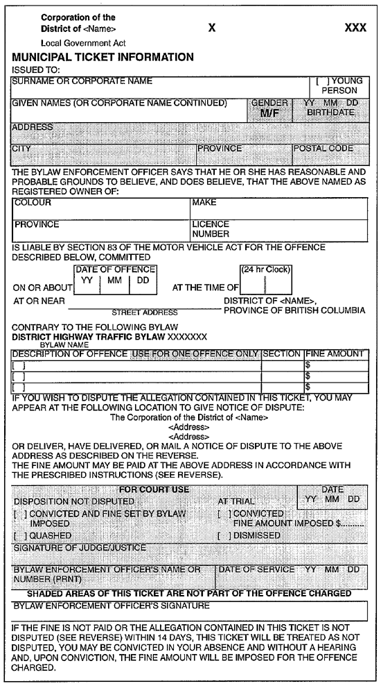 7 (1) A ticket issued under section 272 of the Local Government Act must be in Form A or Form B.