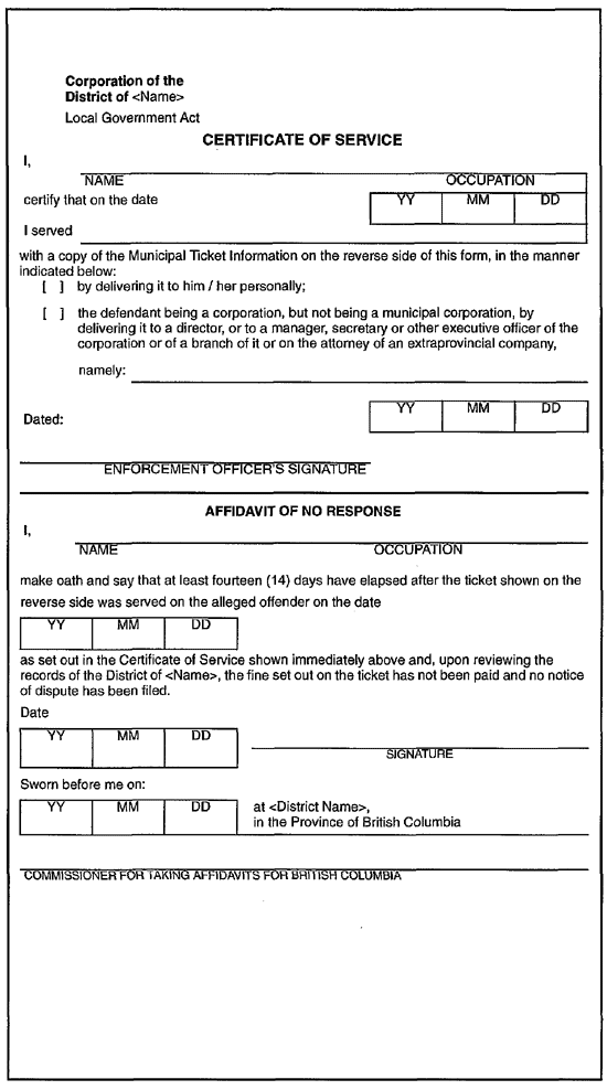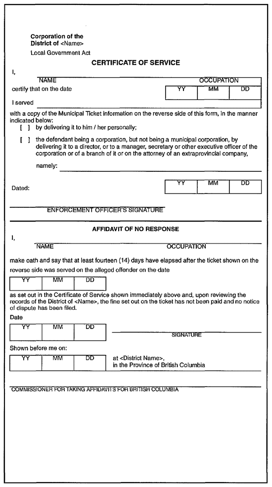 (2) The certificate of service and affidavit of no response to be printed on the reverse side of the ticket must be