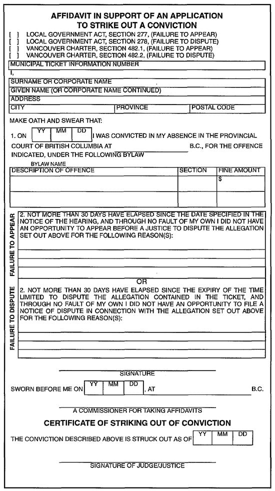 8 An affidavit in support of an application to strike out a conviction and certificate of striking out of conviction must be in Form C.