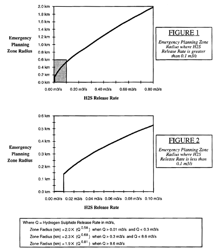 (a) by comparing the maximum potential hydrogen sulphide release rate with Figures 1 and 2 of Schedule 1, or