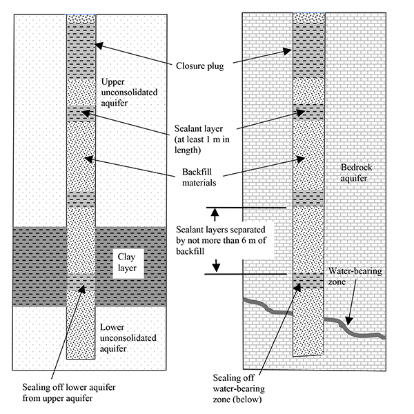 Figure 4: Well decommission with sealants, backfill materials and closure plug.