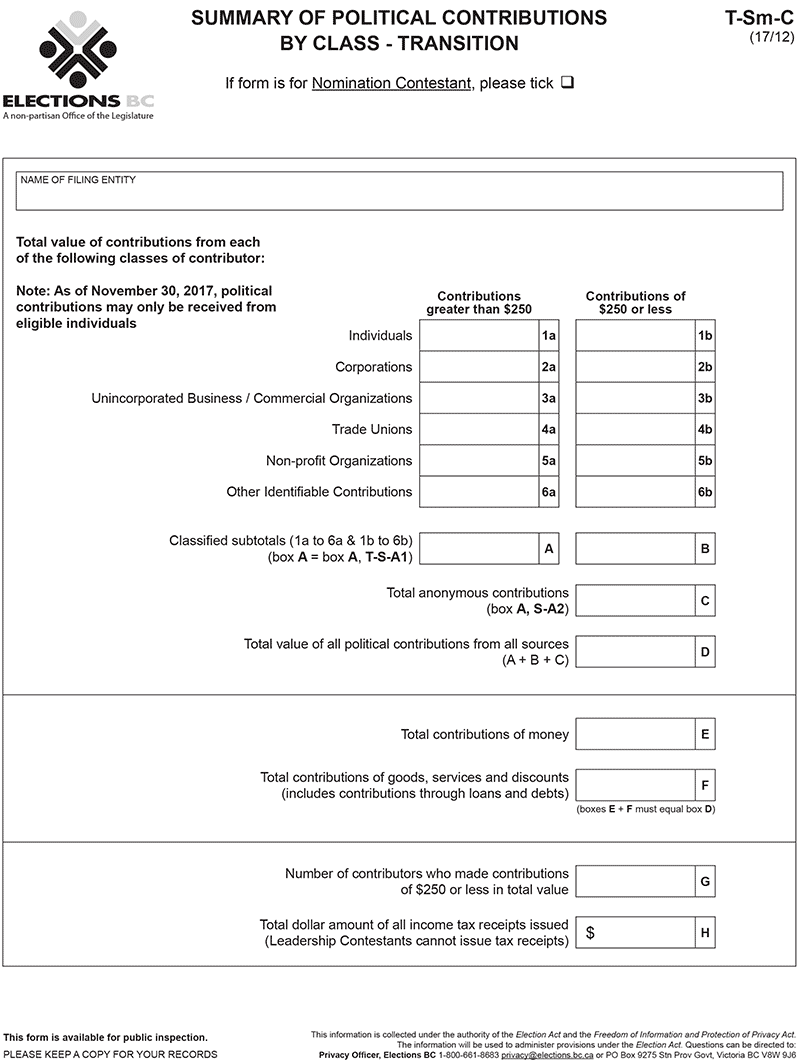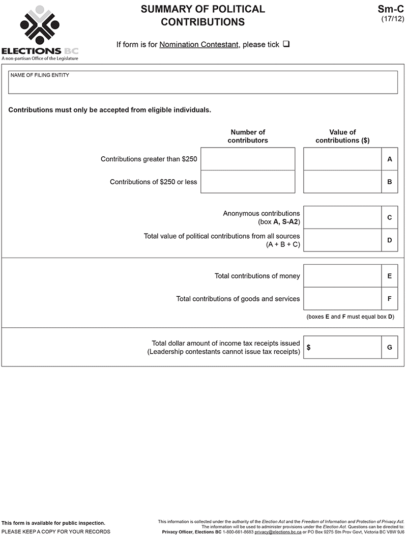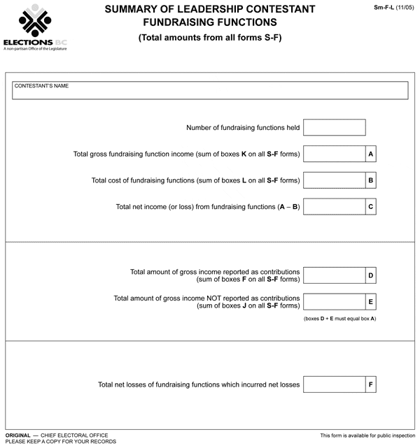 Schedule forms "Summary of Leadership Contestant Fundraising Functions" was added by BC Reg 124/2011, effective July 14, 2011.